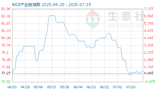 7月22日生意社MDI产业链指数为78.47,与昨日持平,较周期内最高点163.03点(2021-10-13)下降了51.87%,较2020年07月19日最低点67.45点上涨了16.34%。(注:周期指至今)